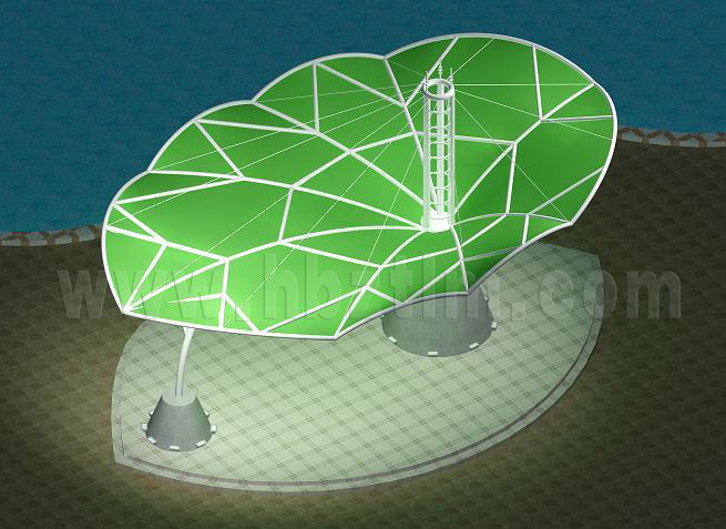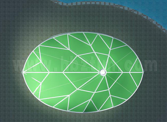 该项目为永久式景观遮阳伞,其结构为内撑式冒顶膜...
