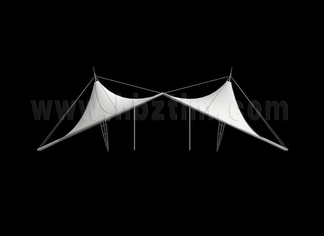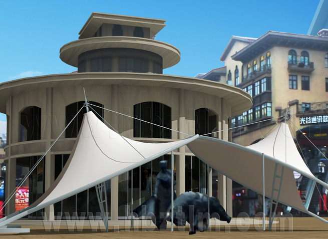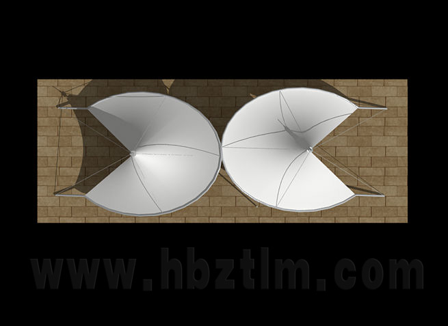 膜材采用PVDF国产或者进口建筑膜材、PTFE玻璃纤维建筑膜材、ETFE透明的永久性建筑膜材;自动放样裁剪,高频焊接,拉伸效果超强,曲线成型可千变万化;膜材质保一般可达15-20年。