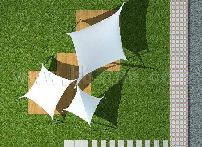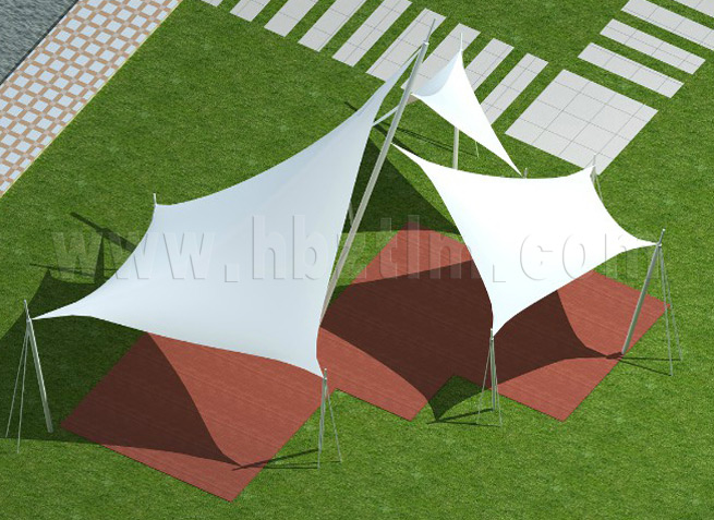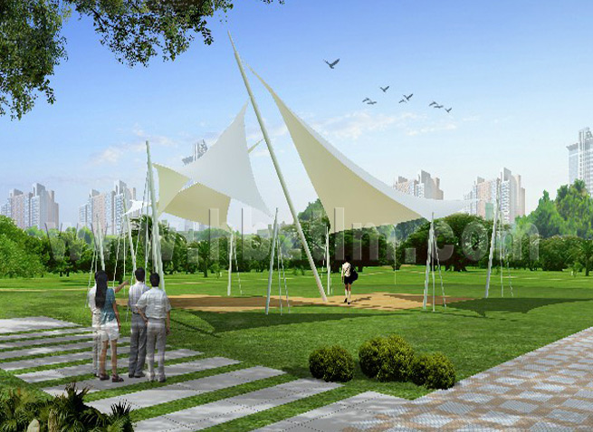 膜材采用PVDF国产或者进口建筑膜材、PTFE玻璃纤维建筑膜材、ETFE透明的永久性建筑膜材;自动放样裁剪,高频焊接,拉伸效果超强,曲线成型可千变万化;膜材质保一般可达15-20年。