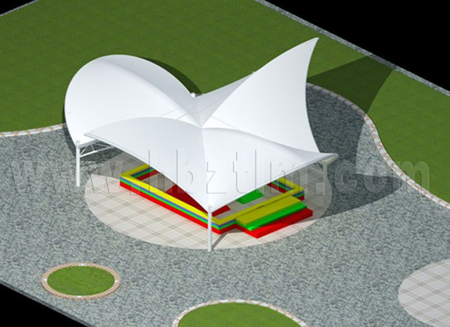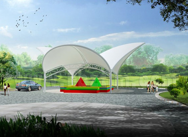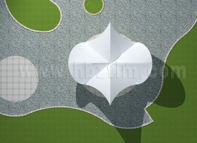 膜材采用PVDF国产或者进口建筑膜材、PTFE玻璃纤维建筑膜材、ETFE透明的永久性建筑膜材;自动放样裁剪,高频焊接,拉伸效果超强,曲线成型可千变万化;膜材质保一般可达15-20年。