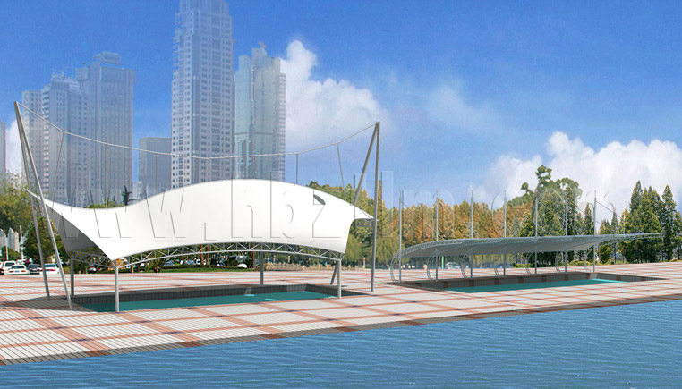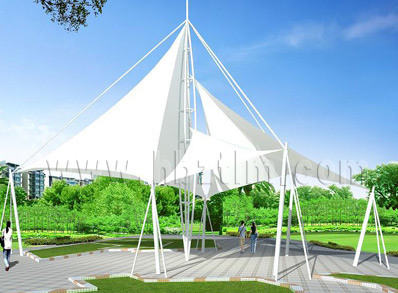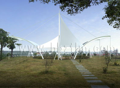 该项目是典型的景观张拉膜结构,俗称飞燕。膜材采...