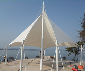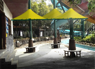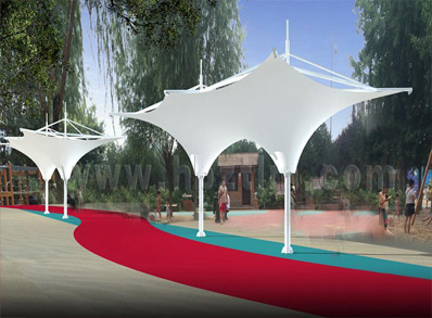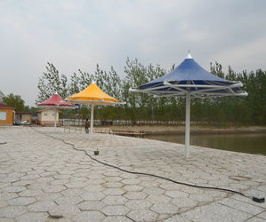 该项目为永久式景观遮阳伞,其结构为内撑式冒顶膜...