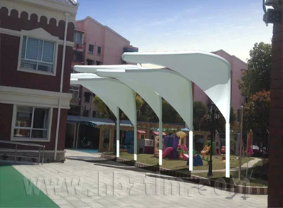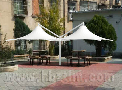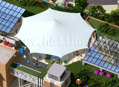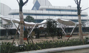 武汉科技馆张拉膜景观棚工程,该项目结构为S型景...