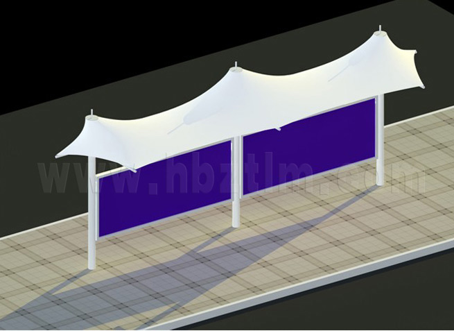 膜材采用PVDF国产或者进口建筑膜材、PTFE玻璃纤维建筑膜材、ETFE透明的永久性建筑膜材;自动放样裁剪,高频焊接,拉伸效果超强,曲线成型可千变万化;膜材质保一般可达15-20年。