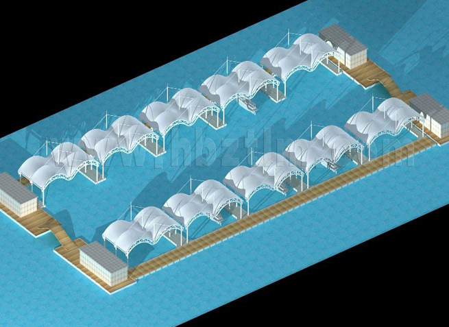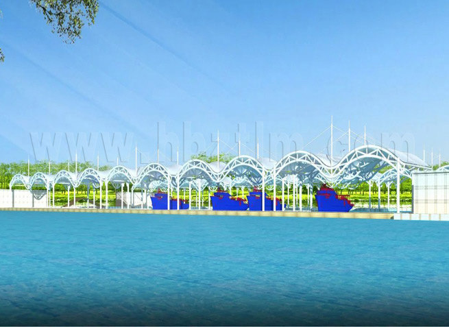 膜材采用PVDF国产或者进口建筑膜材、PTFE玻璃纤维建筑膜材、ETFE透明的永久性建筑膜材;自动放样裁剪,高频焊接,拉伸效果超强,曲线成型可千变万化;膜材质保一般可达15-20年。