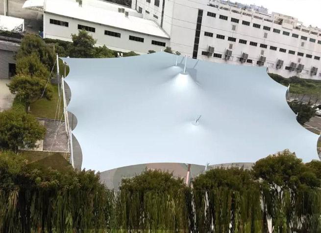 膜材采用PVDF国产或者进口建筑膜材、PTFE玻璃纤维建筑膜材、ETFE透明的永久性建筑膜材;自动放样裁剪,高频焊接,拉伸效果超强,曲线成型可千变万化;膜材质保一般可达15-20年。