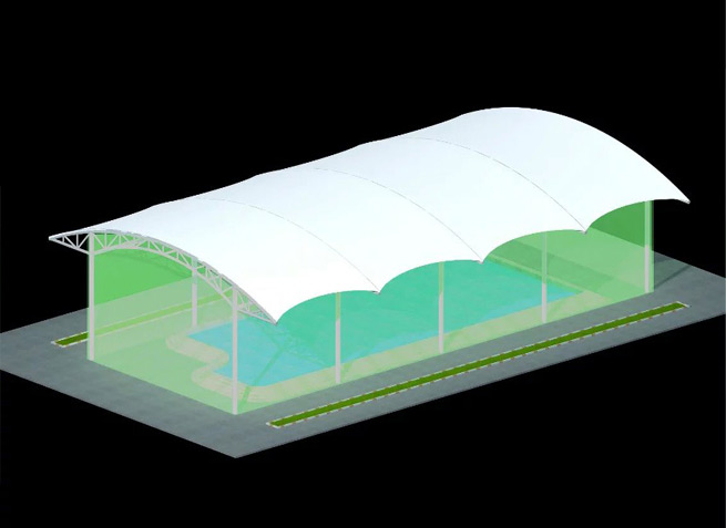 膜材采用PVDF国产或者进口建筑膜材、PTFE玻璃纤维建筑膜材、ETFE透明的永久性建筑膜材;自动放样裁剪,高频焊接,拉伸效果超强,曲线成型可千变万化;膜材质保一般可达15-20年。