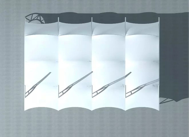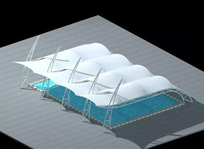 膜材采用PVDF国产或者进口建筑膜材、PTFE玻璃纤维建筑膜材、ETFE透明的永久性建筑膜材;自动放样裁剪,高频焊接,拉伸效果超强,曲线成型可千变万化;膜材质保一般可达15-20年。
