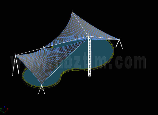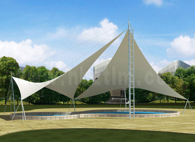 膜材采用PVDF国产或者进口建筑膜材、PTFE玻璃纤维建筑膜材、ETFE透明的永久性建筑膜材;自动放样裁剪,高频焊接,拉伸效果超强,曲线成型可千变万化;膜材质保一般可达15-20年。