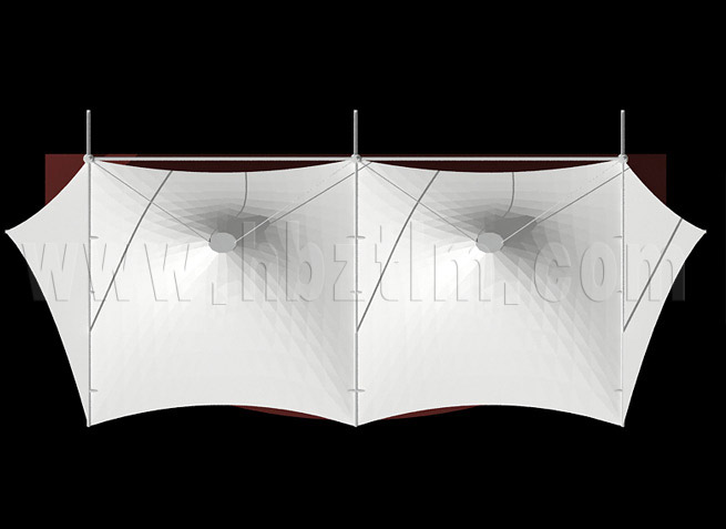 膜材采用PVDF国产或者进口建筑膜材、PTFE玻璃纤维建筑膜材、ETFE透明的永久性建筑膜材;自动放样裁剪,高频焊接,拉伸效果超强,曲线成型可千变万化;膜材质保一般可达15-20年。