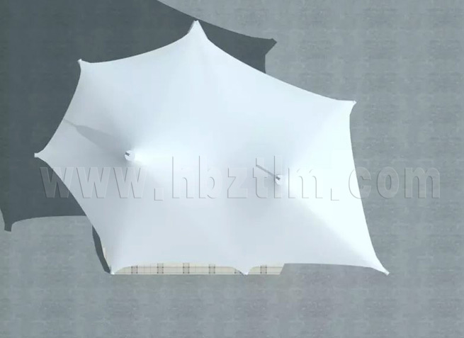 膜材采用PVDF国产或者进口建筑膜材、PTFE玻璃纤维建筑膜材、ETFE透明的永久性建筑膜材;自动放样裁剪,高频焊接,拉伸效果超强,曲线成型可千变万化;膜材质保一般可达15-20年。