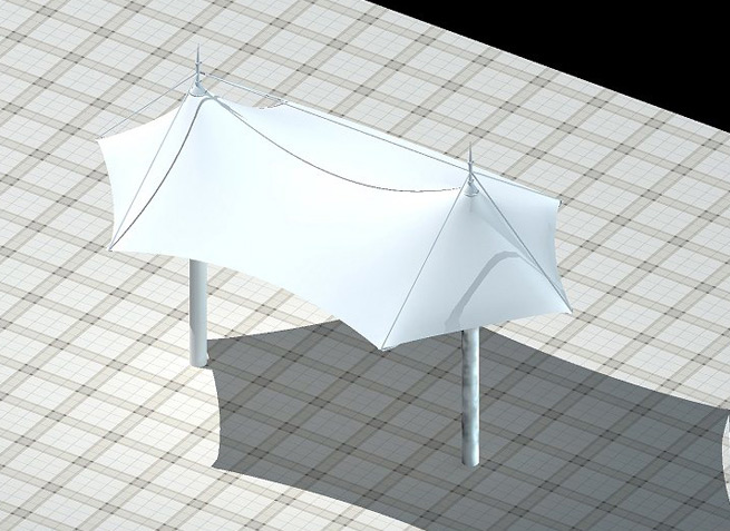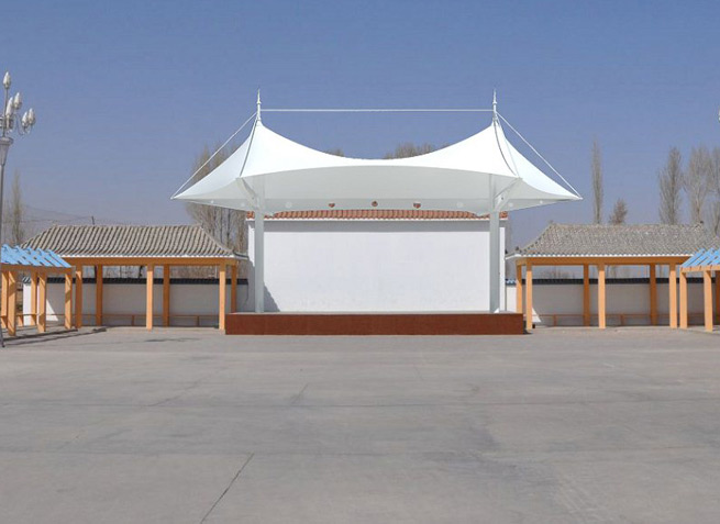 膜材采用PVDF国产或者进口建筑膜材、PTFE玻璃纤维建筑膜材、ETFE透明的永久性建筑膜材;自动放样裁剪,高频焊接,拉伸效果超强,曲线成型可千变万化;膜材质保一般可达15-20年。