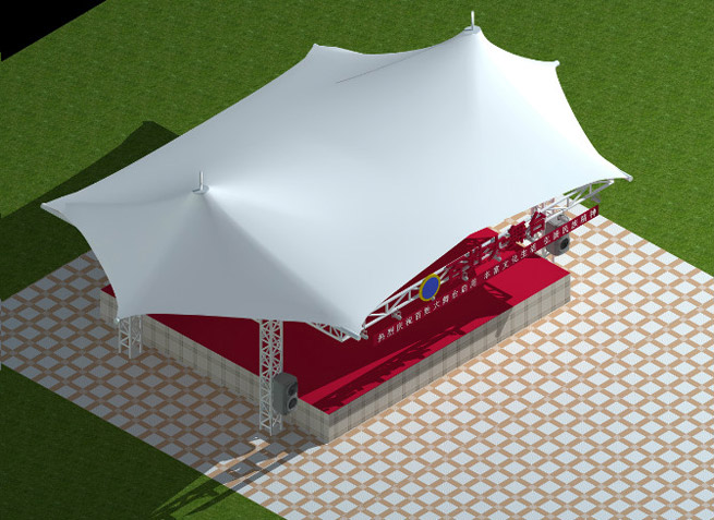 膜材采用PVDF国产或者进口建筑膜材、PTFE玻璃纤维建筑膜材、ETFE透明的永久性建筑膜材;自动放样裁剪,高频焊接,拉伸效果超强,曲线成型可千变万化;膜材质保一般可达15-20年。