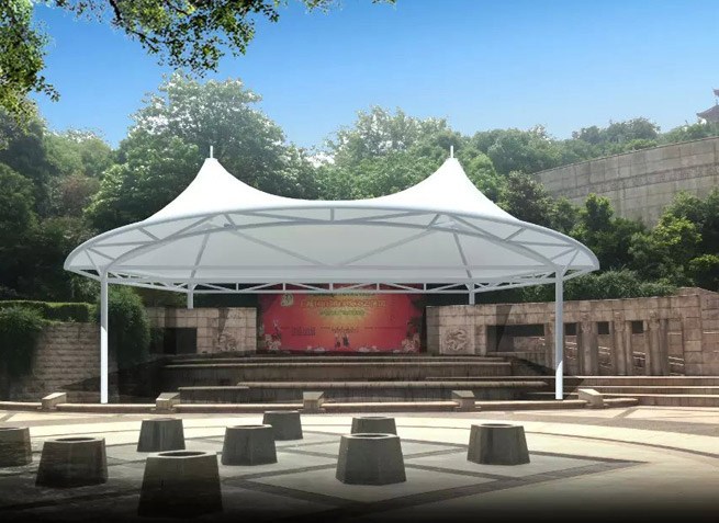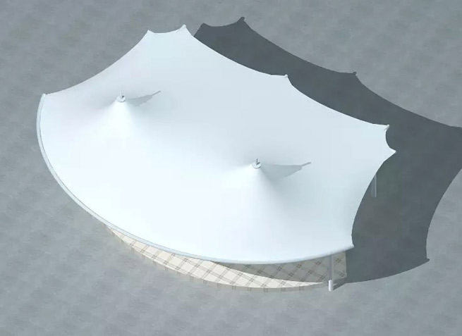 膜材采用PVDF国产或者进口建筑膜材、PTFE玻璃纤维建筑膜材、ETFE透明的永久性建筑膜材;自动放样裁剪,高频焊接,拉伸效果超强,曲线成型可千变万化;膜材质保一般可达15-20年。