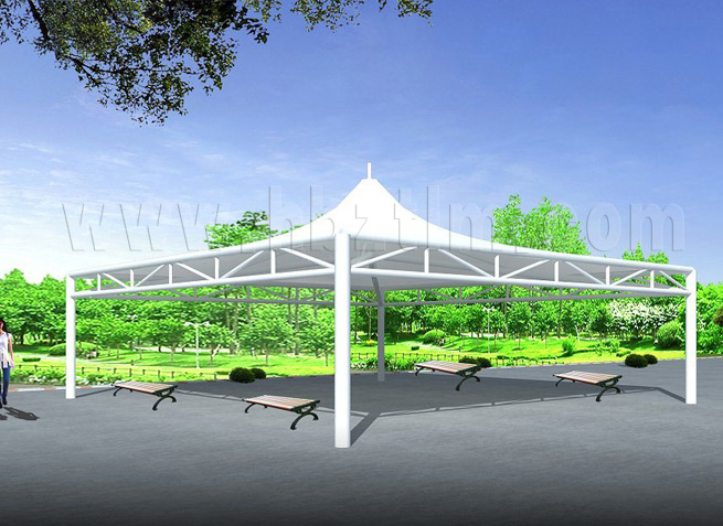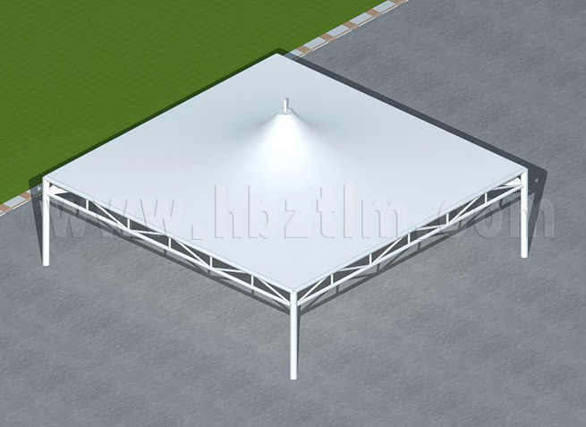 膜材采用PVDF国产或者进口建筑膜材、PTFE玻璃纤维建筑膜材、ETFE透明的永久性建筑膜材;自动放样裁剪,高频焊接,拉伸效果超强,曲线成型可千变万化;膜材质保一般可达15-20年。