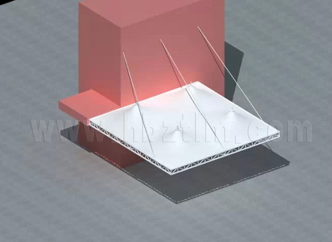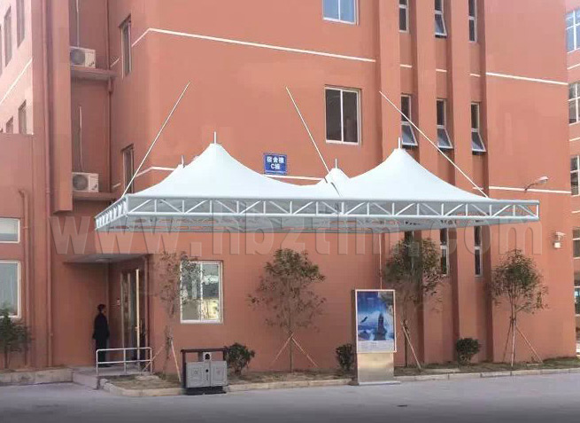 膜材采用PVDF国产或者进口建筑膜材、PTFE玻璃纤维建筑膜材、ETFE透明的永久性建筑膜材;自动放样裁剪,高频焊接,拉伸效果超强,曲线成型可千变万化;膜材质保一般可达15-20年。
