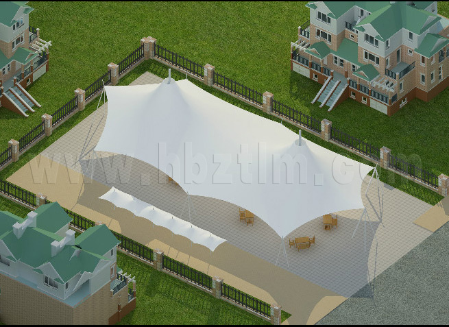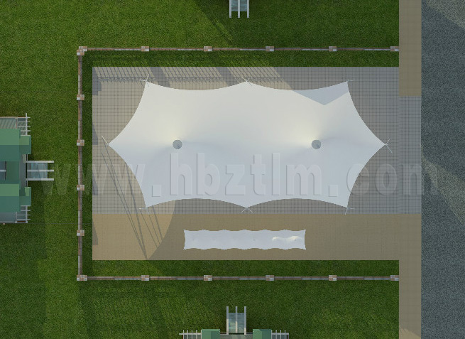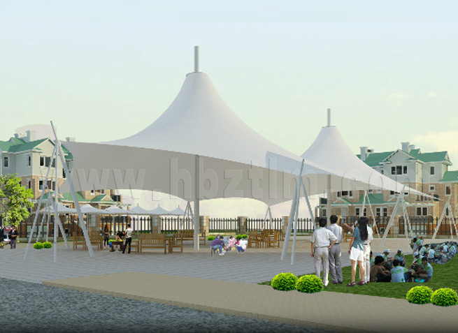 膜材采用PVDF国产或者进口建筑膜材、PTFE玻璃纤维建筑膜材、ETFE透明的永久性建筑膜材;自动放样裁剪,高频焊接,拉伸效果超强,曲线成型可千变万化;膜材质保一般可达15-20年。