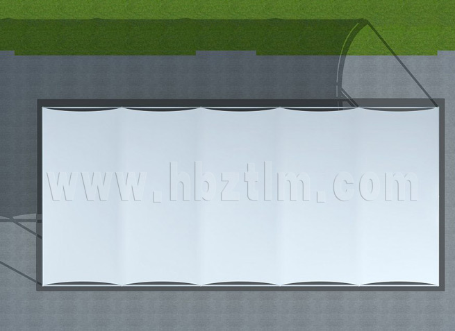 膜材采用PVDF国产或者进口建筑膜材、PTFE玻璃纤维建筑膜材、ETFE透明的永久性建筑膜材;自动放样裁剪,高频焊接,拉伸效果超强,曲线成型可千变万化;膜材质保一般可达15-20年。