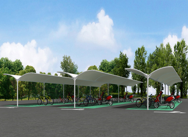 恒天嘉华张拉式冒顶膜结构自行车车棚,本顶目为冒...