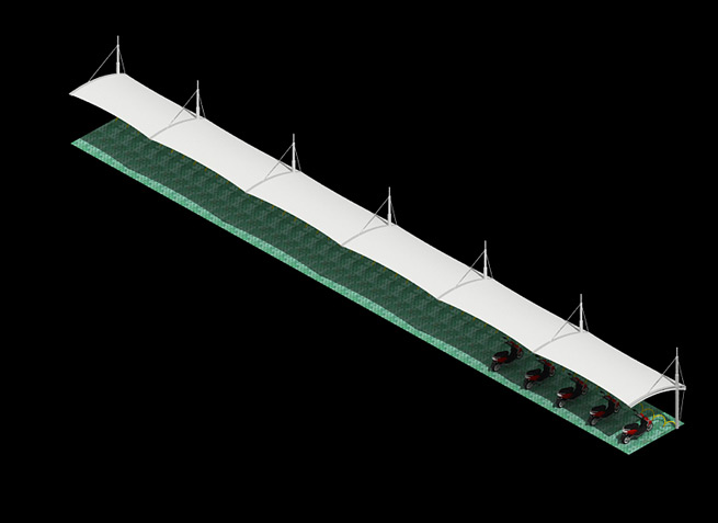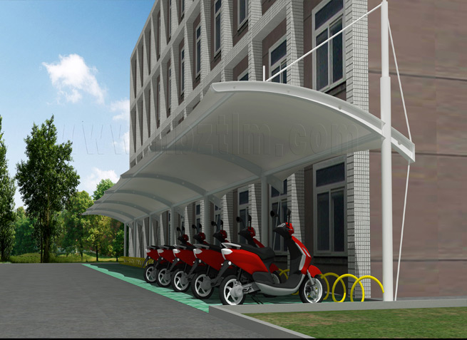 湖北凯骑公司吊塔式异形钢膜结构车棚,本项目采用...