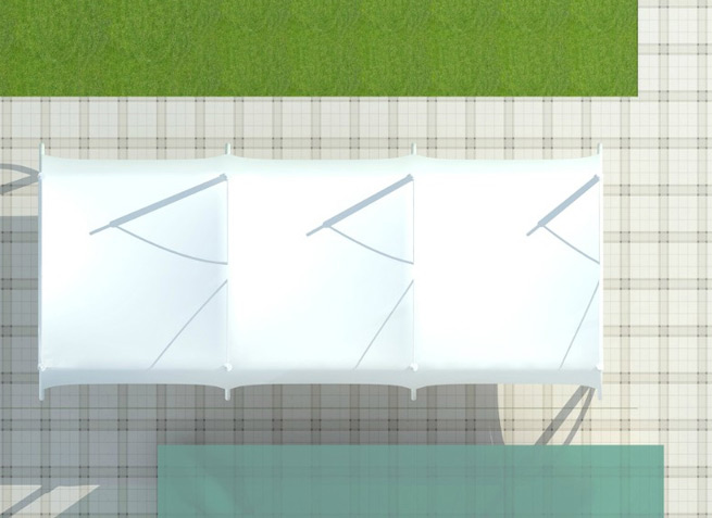 膜材采用PVDF国产或者进口建筑膜材、PTFE玻璃纤维建筑膜材、ETFE透明的永久性建筑膜材;自动放样裁剪,高频焊接,拉伸效果超强,曲线成型可千变万化;膜材质保一般可达15-20年。