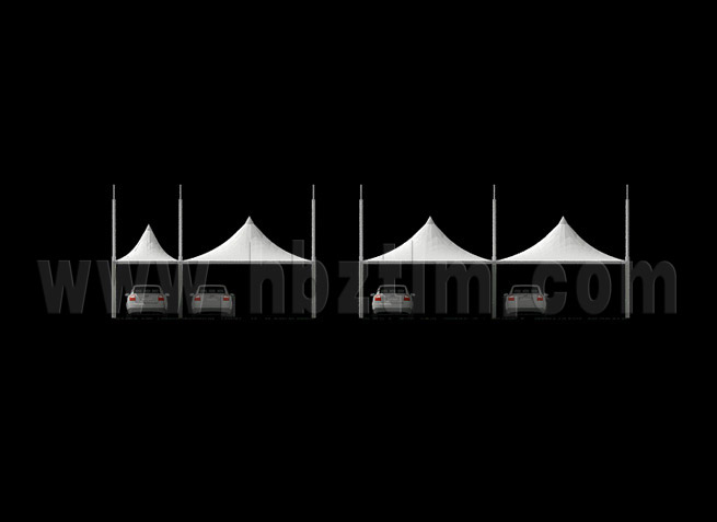 膜材采用PVDF国产或者进口建筑膜材、PTFE玻璃纤维建筑膜材、ETFE透明的永久性建筑膜材;自动放样裁剪,高频焊接,拉伸效果超强,曲线成型可千变万化;膜材质保一般可达15-20年。