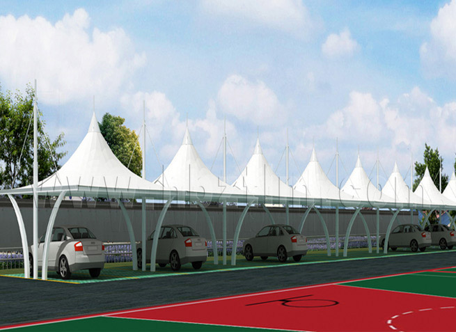 湖北长江楚韵吊塔式异型钢膜结构车棚,本项目采...