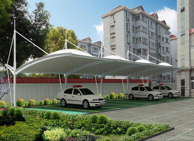 湖北凯骑公司吊塔式异形钢膜结构车棚,本项目采用...