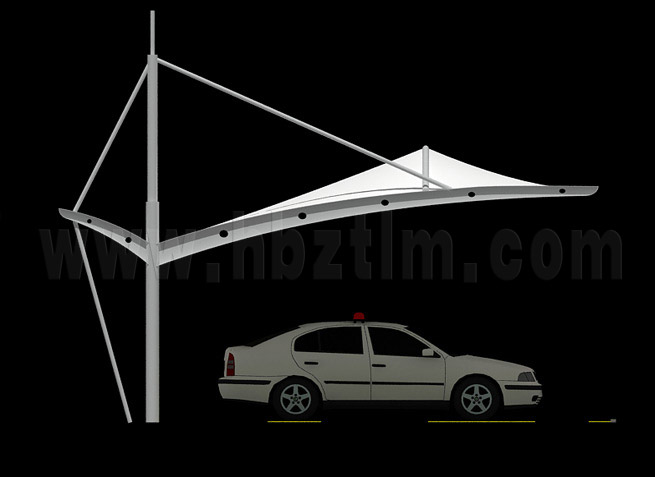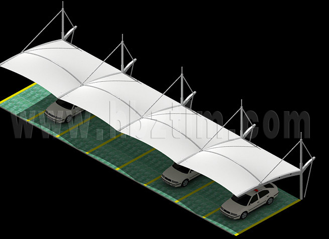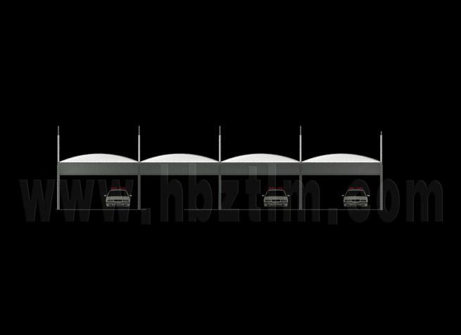 汉川吊塔式异形钢膜结构停车棚,本项目采用前软边...