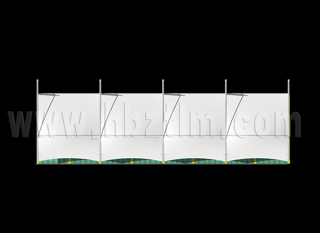 膜材采用PVDF国产或者进口建筑膜材、PTFE玻璃纤维建筑膜材、ETFE透明的永久性建筑膜材;自动放样裁剪,高频焊接,拉伸效果超强,曲线成型可千变万化;膜材质保一般可达15-20年。