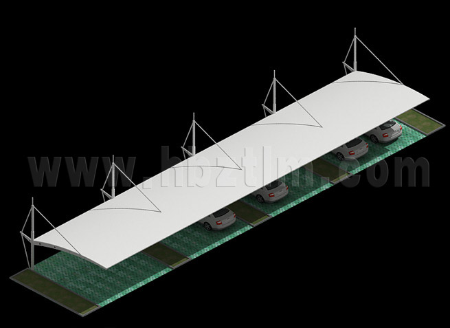 恒天嘉华吊塔式异形钢膜结构车棚,本项目采用前软...