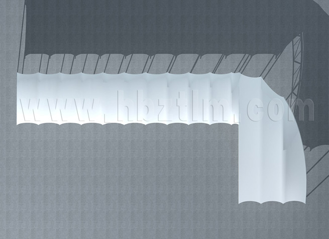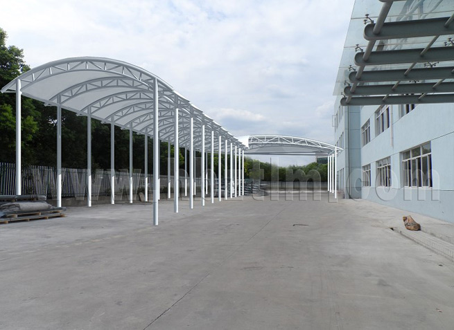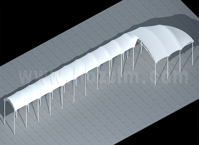 膜材采用PVDF国产或者进口建筑膜材、PTFE玻璃纤维建筑膜材、ETFE透明的永久性建筑膜材;自动放样裁剪,高频焊接,拉伸效果超强,曲线成型可千变万化;膜材质保一般可达15-20年。