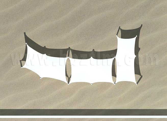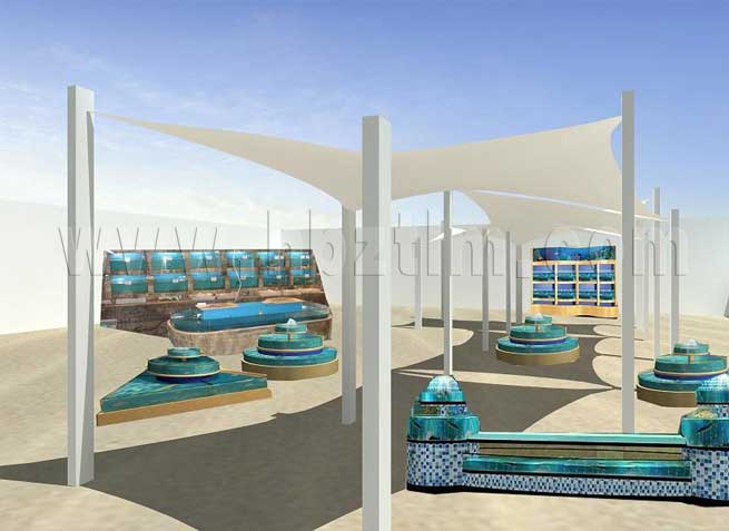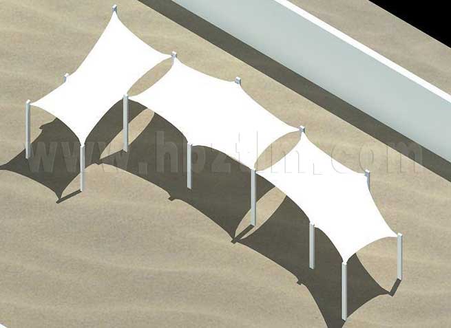 膜材采用PVDF国产或者进口建筑膜材、PTFE玻璃纤维建筑膜材、ETFE透明的永久性建筑膜材;自动放样裁剪,高频焊接,拉伸效果超强,曲线成型可千变万化;膜材质保一般可达15-20年。