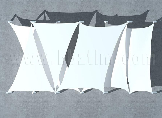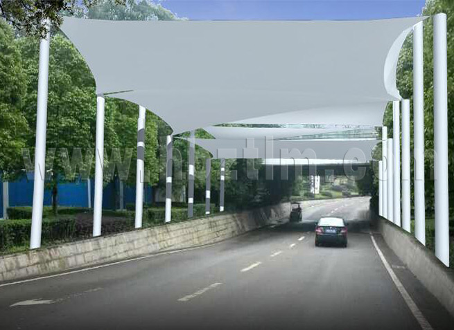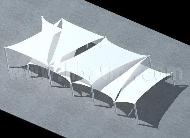 膜材采用PVDF国产或者进口建筑膜材、PTFE玻璃纤维建筑膜材、ETFE透明的永久性建筑膜材;自动放样裁剪,高频焊接,拉伸效果超强,曲线成型可千变万化;膜材质保一般可达15-20年。