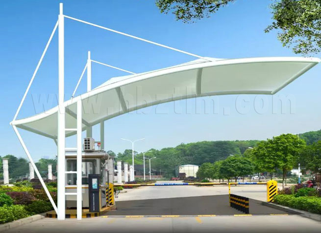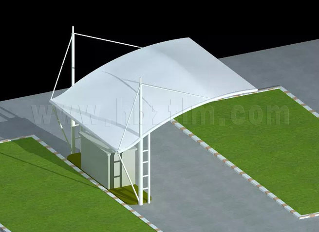 膜材采用PVDF国产或者进口建筑膜材、PTFE玻璃纤维建筑膜材、ETFE透明的永久性建筑膜材;自动放样裁剪,高频焊接,拉伸效果超强,曲线成型可千变万化;膜材质保一般可达15-20年。