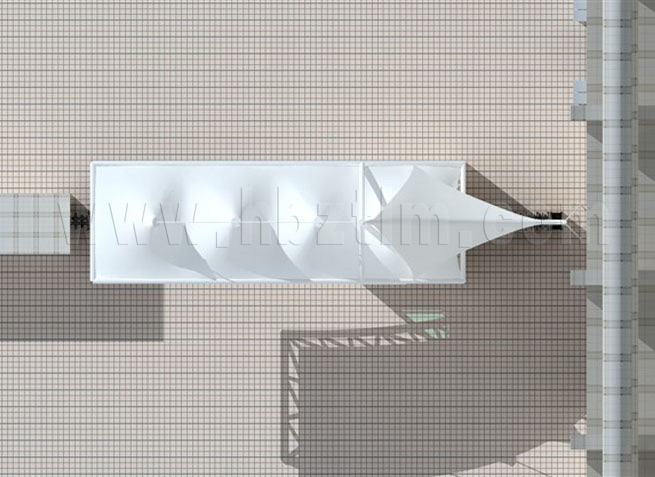 膜材采用PVDF国产或者进口建筑膜材、PTFE玻璃纤维建筑膜材、ETFE透明的永久性建筑膜材;自动放样裁剪,高频焊接,拉伸效果超强,曲线成型可千变万化;膜材质保一般可达15-20年。