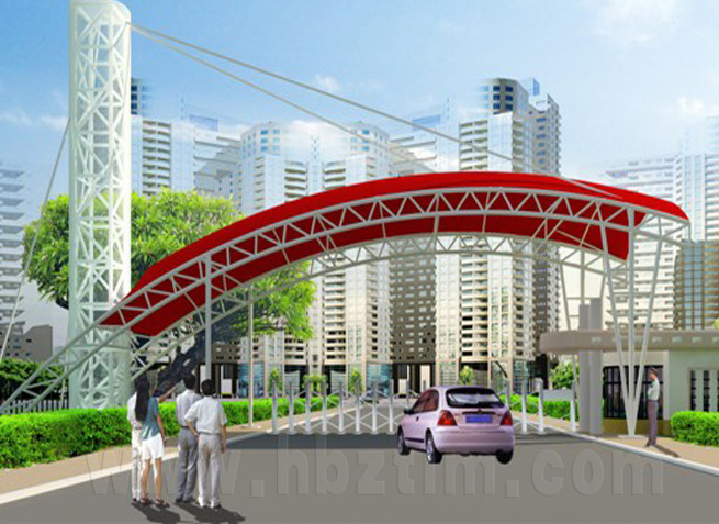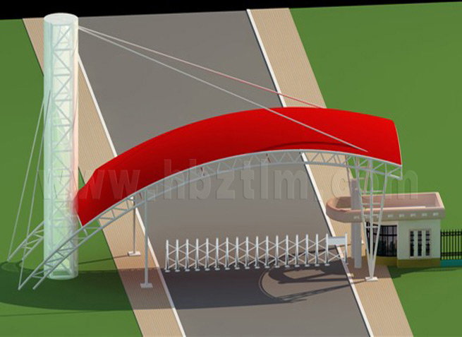 膜材采用PVDF国产或者进口建筑膜材、PTFE玻璃纤维建筑膜材、ETFE透明的永久性建筑膜材;自动放样裁剪,高频焊接,拉伸效果超强,曲线成型可千变万化;膜材质保一般可达15-20年。