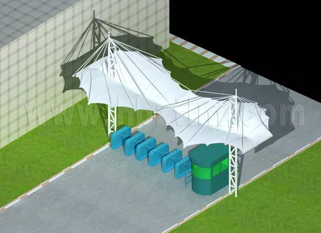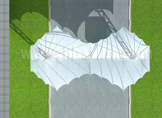 膜材采用PVDF国产或者进口建筑膜材、PTFE玻璃纤维建筑膜材、ETFE透明的永久性建筑膜材;自动放样裁剪,高频焊接,拉伸效果超强,曲线成型可千变万化;膜材质保一般可达15-20年。