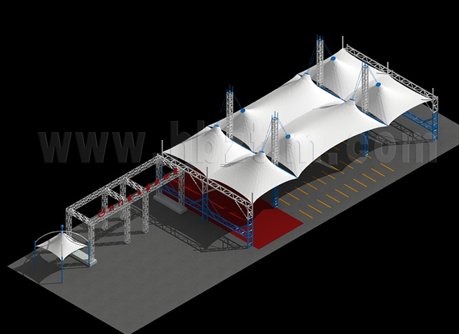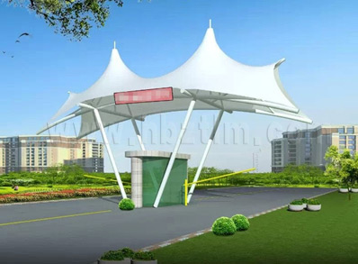 膜材采用PVDF国产或者进口建筑膜材、PTFE玻璃纤维建筑膜材、ETFE透明的永久性建筑膜材;自动放样裁剪,高频焊接,拉伸效果超强,曲线成型可千变万化;膜材质保一般可达15-20年。