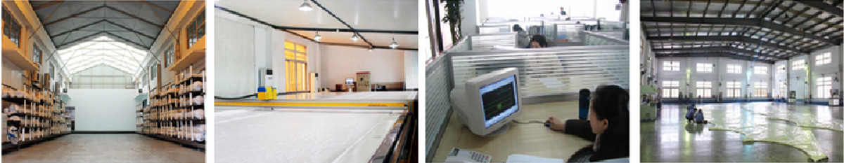 公司拥有2000平方米现代化专业膜材加工厂,大型膜材焊接设备6台,可提供400,000平方米/年的膜加工生产能力。车间还备有大型PVCE及PTFE膜结构加工制作设备和检测检验设备,所有原始膜材在加工前均经过严格检测,可保证加工完成的膜成品没有色差、色斑、涂层缺陷及断丝等质量问题。