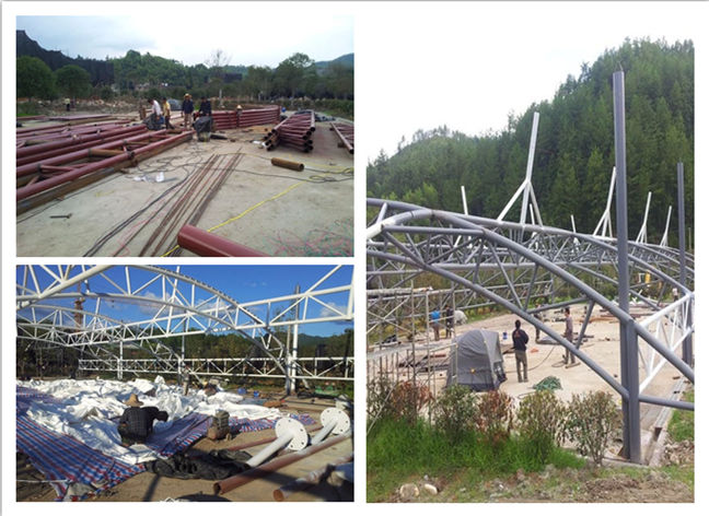 图1 江西南昌风景区网球场顶棚膜结构钢结构现场施工图