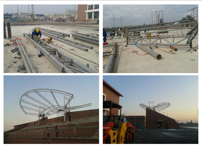 图1 咸宁学校主席台膜结构工程钢结构现场施工图