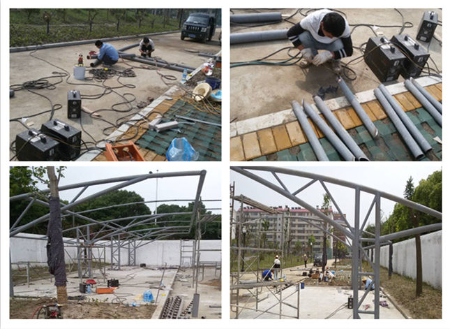 图1 仙桃农商行T型圆管膜结构自行车棚钢结构现场施工图