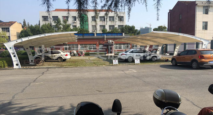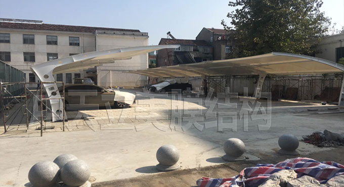 经过工程施工人员20天稳步施工,膜结构车棚竣工啦!已通过业主验收并交付业主,以下图片是三处地方膜结构车棚成品照片及细节图展示。