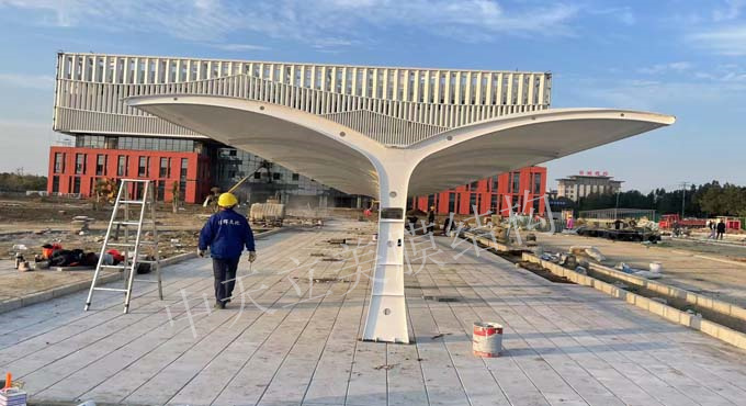 襄阳谷城文化广场电动车棚膜结构项目完工