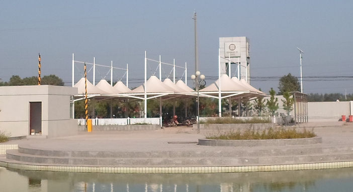 开工时间:2014年3月 查看详情恒天嘉华张拉式冒顶膜结构自行车车棚,本顶目为冒顶式膜结构车棚,采用连帽全软边张拉形式,美观而实用; 膜材采用ZZF白色建筑膜材,整体结构从设计到施工,都精工细作,臻至完美。