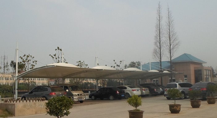 开工时间:2015年8月 查看详情湖北长江楚韵吊塔式异型钢膜结构车棚,本项目采用前软边后硬边张拉形式;结构由立柱、拉杆、挑梁、横杆构成,其挑梁和中间横杆一般采用异形钢挑梁形式,美观而不积水且抗负荷能力强;膜材采用ZZF白色建筑膜材,15年质保,整体结构美观实用,经济牢固,臻至完美。
