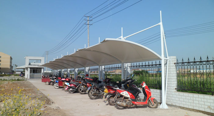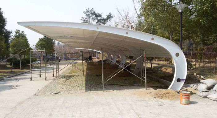 开工时间:2016年6月16日 查看详情随州市审计局异型钢膜结构汽车车棚,本项目采用前软边后硬边张拉形式;结构由立柱、拉杆、挑梁、横杆构成,其挑梁和中间横杆一般采用异形钢挑梁形式,美观而不积水且抗负荷能力强;膜材采用PVDF白色车棚专用建筑膜材,15年质保,整体结构美观实用,经济牢固,臻至完美。