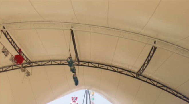图2 七彩庄园舞台膜结构拉膜现场施工图