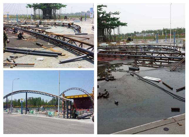 图1 七彩庄园舞台膜结构钢结构现场施工图
